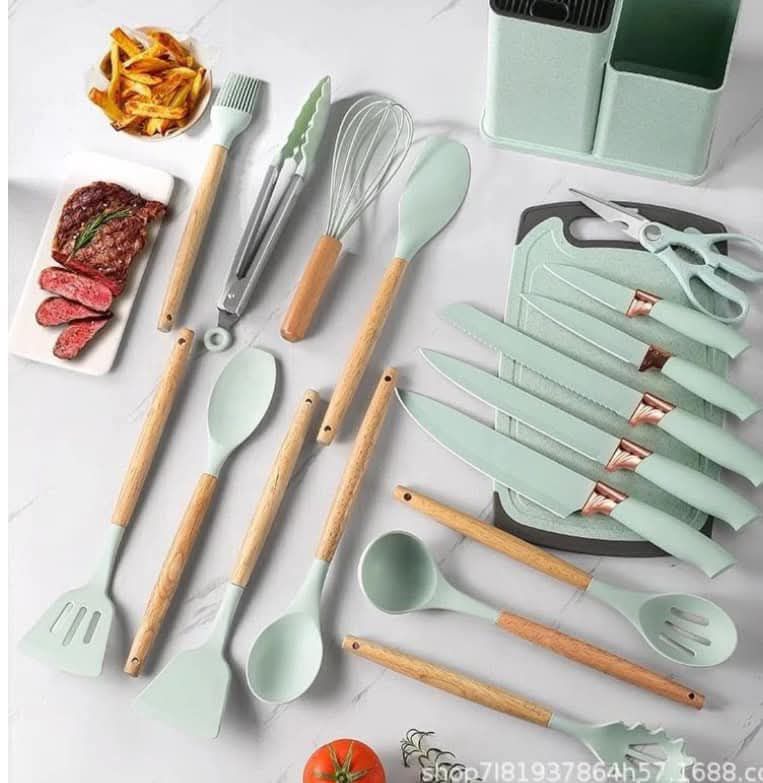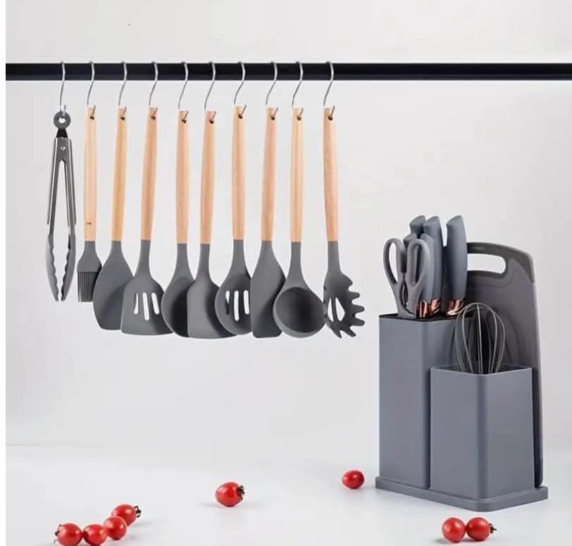Upgrade your kitchen with this premium 19-piece silicone and wooden utensil set, designed to give you every essential tool in one convenient, stylish collection. Made with food-grade, non-toxic silicone and paired with ergonomic wooden handles, this set delivers safety, durability, and comfort for all your cooking needs.